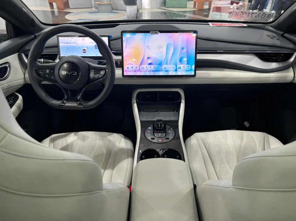 新車的內(nèi)飾采用了較多海洋元素的設(shè)計(jì),整體的風(fēng)格年輕新潮,中控臺(tái)的布局合理,部分區(qū)域采用的是軟質(zhì)材料包裹,細(xì)節(jié)處還裝飾了銀色以及亮黑色飾條來(lái)提升質(zhì)感,液晶儀表盤(pán)的造型方正,大尺寸的懸浮式中控屏內(nèi)置的是Dilink 100車機(jī)系統(tǒng),功能豐富,并且具備不錯(cuò)的人機(jī)交互能力。多功能方向盤(pán)造型圓潤(rùn),“海洋之心”的操控臺(tái)區(qū)域布局合理,水晶電子換擋桿的造型精致,周邊配備了整體的物理按鍵。