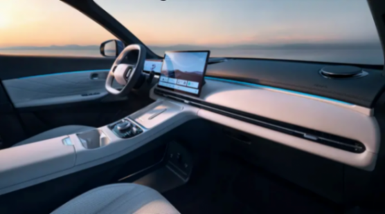 車內(nèi)就是非常典型的新能源車風格了,整個非常簡約,同時大量平直的線條,也拉寬了車內(nèi)的視覺效果。細節(jié)方面,新車配備了平底雙輻式方向盤。至于配置,可以看到像全液晶儀表、大尺寸中控屏、懸浮式揚聲器、車內(nèi)氛圍燈、手機無線充電均有配備。