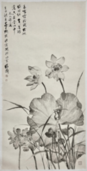 劉波《粉披綠映紅》138cm×69cm