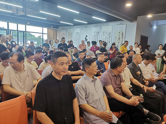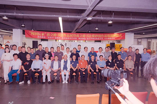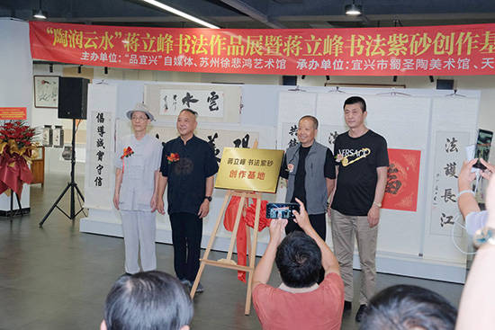 日前,記者在江蘇宜興市蜀圣陶美術(shù)館會(huì)議室,以弘揚(yáng)中華書法與紫砂文化為主題的“宜興陶潤(rùn)云水蔣立峰書法作品展暨蔣立峰書法紫砂創(chuàng)作基地揭牌”活動(dòng)成功舉行,參加此次活動(dòng)的有來(lái)自宜興市有關(guān)單位的領(lǐng)導(dǎo)、宜興市美術(shù)館、宜興市旅游協(xié)會(huì)、宜興市古鎮(zhèn)文化研究會(huì)以及紫砂行業(yè)的紫砂大師、知名工藝師,以及省外的書畫與紫砂藝術(shù)的相關(guān)人士共百余名代表。