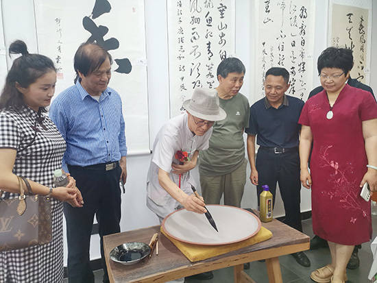 宜興市委原書記劉湘根先生致辭:他首先向參會(huì)的代表致以由衷的歡迎,并祝賀蔣立峰書法作品展與蔣立峰書法紫砂創(chuàng)作基地的成立,大書法家蔣立峰書法作品以其傳承古法基礎(chǔ)上彰顯正大氣象,書法名家蔣立峰與紫砂名家的強(qiáng)強(qiáng)聯(lián)合,將不斷創(chuàng)作出優(yōu)秀的藝術(shù)作品,用藝術(shù)作品更好地服務(wù)社會(huì)。并希望此創(chuàng)作基地開花結(jié)果,并綻放碩果。