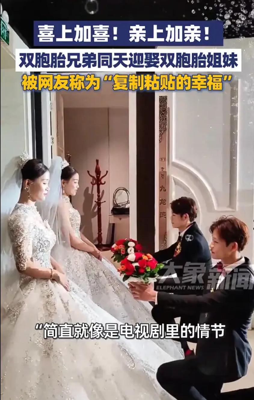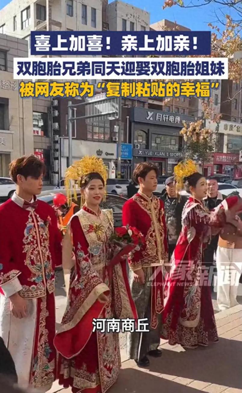雙囍!雙胞胎兄弟同天迎娶雙胞胎姐妹!網(wǎng)友:復(fù)制粘貼的幸福!