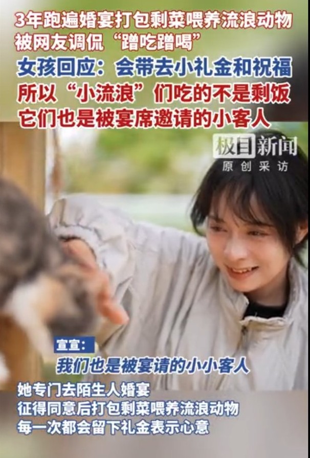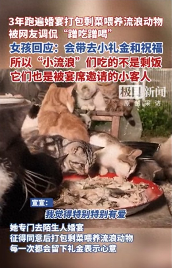 近日,一則關(guān)于一位女孩在婚宴后打包剩菜喂養(yǎng)流浪貓的新聞在網(wǎng)絡(luò)上引發(fā)了廣泛關(guān)注和熱議。這件看似普通的小事,卻折射出人性中最溫暖的一面,也引發(fā)了關(guān)于善意、環(huán)保與責(zé)任的深思。
